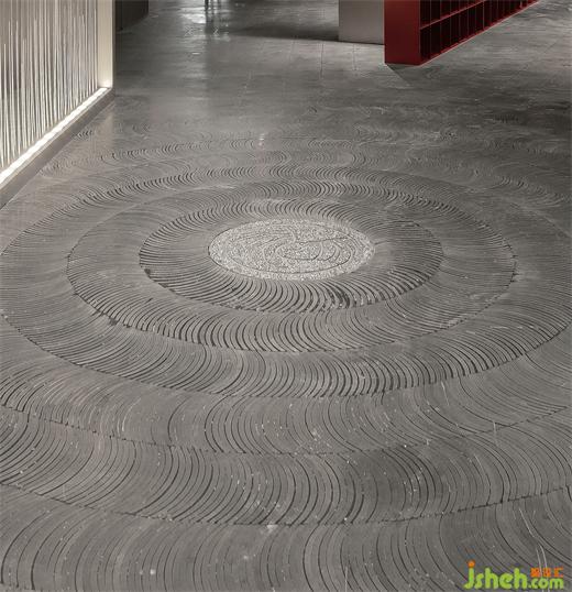 The tiles at the entrance are arranged in a circular shape, echoing the rotating umbrella on the façade. And the fist-clutching gesture carved in the middle granite also echoes the main theme of Kungfu Hero.