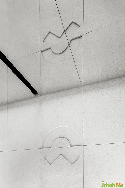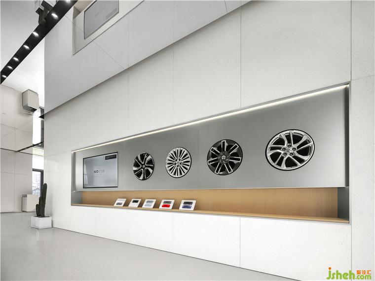 镜面天花纵向的拓展空间,带来视觉的延伸。4S店设计品牌标志以阴刻工艺低调的隐藏于水磨石墙面,让车成为空间的主角。