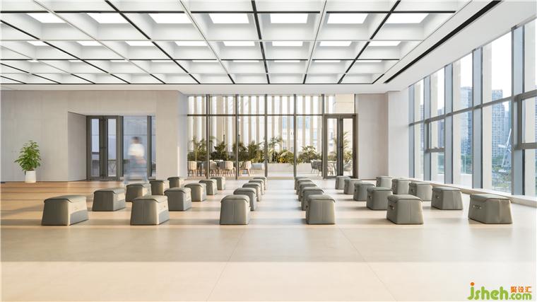 三层的中部空间,MOC运用开敞式的艺术展馆的布局方式,并设计了一系列平时被收纳在墙体内的移动式隔断系统,4S店设计使空间能够根据使用场景进行灵活的变动,无论是展览、论坛、讲座、音乐会、瑜伽、健身……这个空间都可以承载。