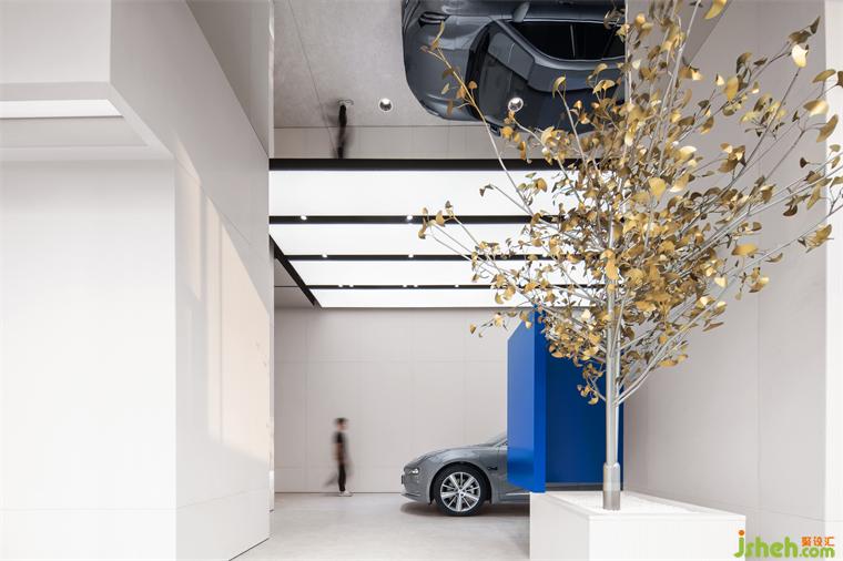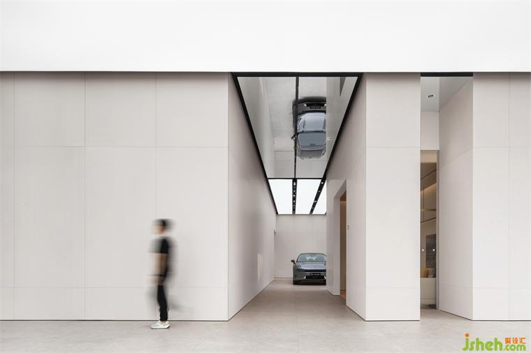 ▼从室外看向空间内部,可窥探到展车的局部