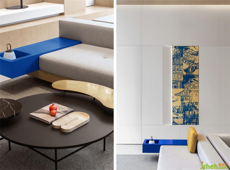 空间中设计的金箔漆画和屏风都抽象的展示了古城景象,以此回应古城韵味。