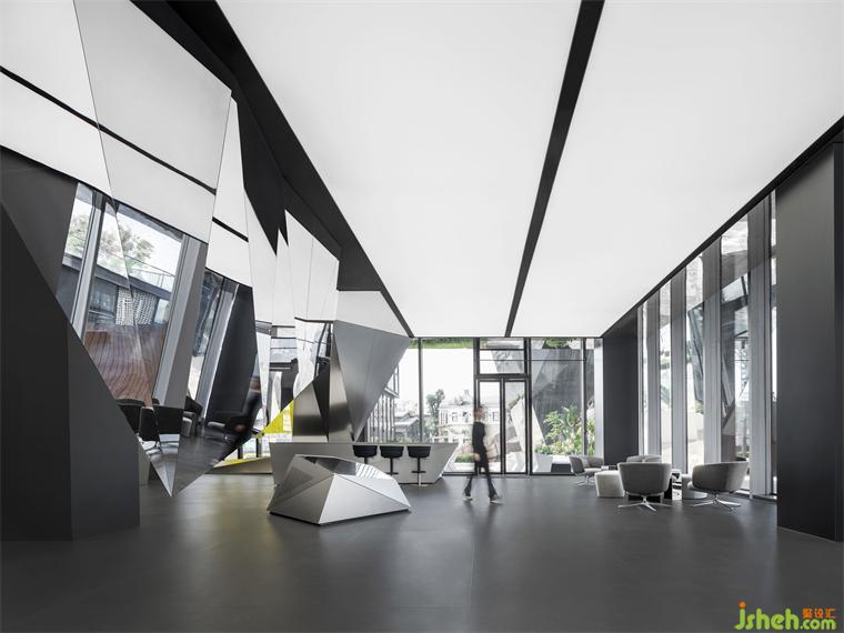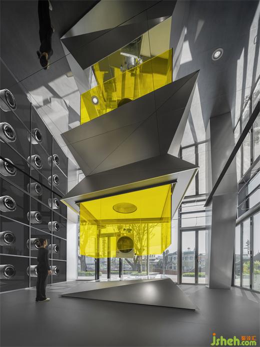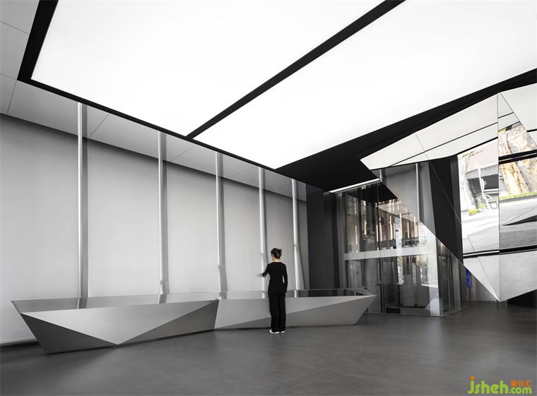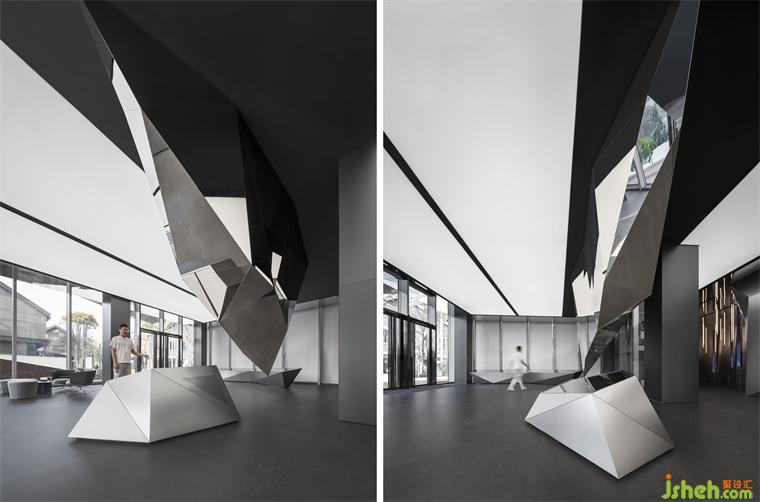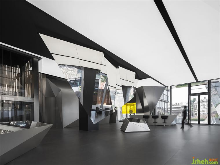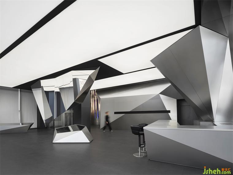 一层围绕棱镜装置,构筑出整体冷峻科技的空间调性。