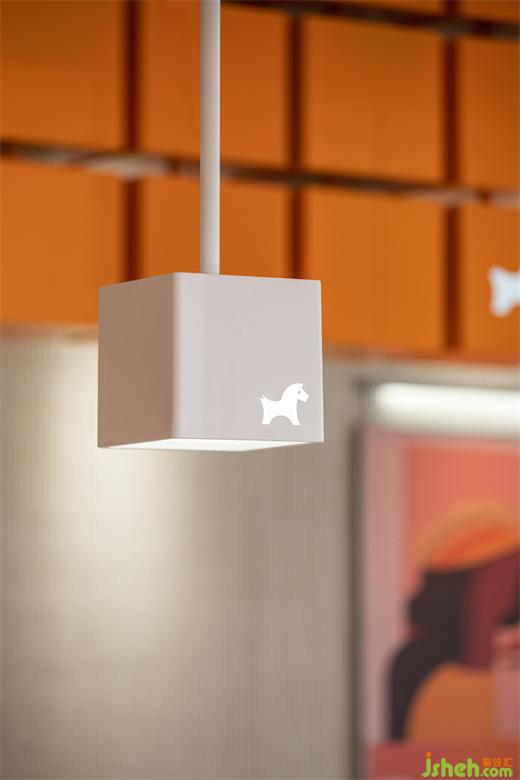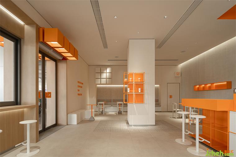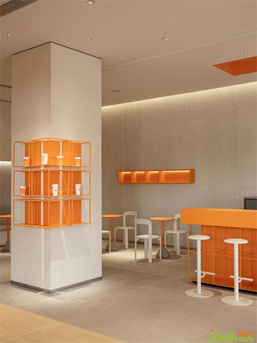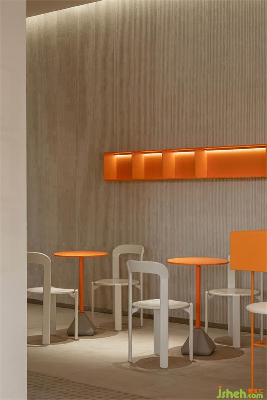 ▲橙色的cube构成的入口屋檐一直延伸至室内