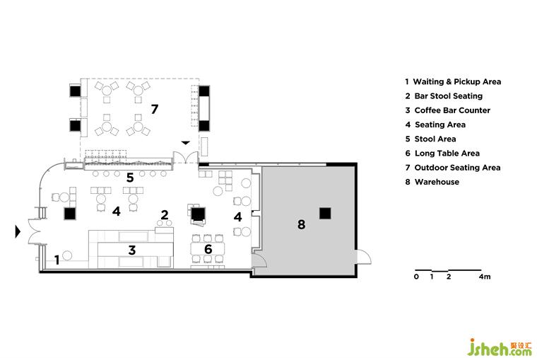 针对社区店,MOC希望创造一个与街区更强的联系,为顾客提供一个日常生活中愉悦的“停顿”场所。因此我们通过可开启的折叠窗连同室内外,强调内与外的连接与对话。