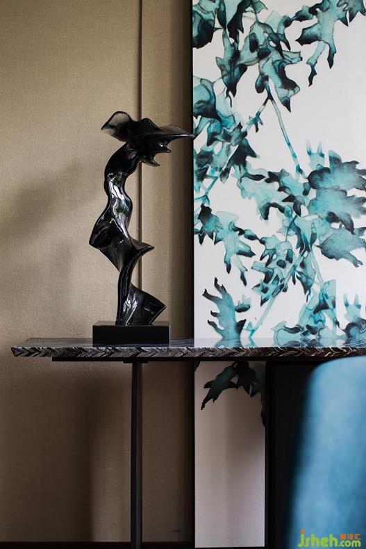 本案中,我们花了一些心思把山水和自然的感觉在空间里做了时间的跨度,利用新型材料的形重新诠释水墨山水的影,赋有肌理感的木质与金属、灵动飘逸的灯饰、古典与现代结合的屏风、新中式的配件,这些看似细微的改变在交相呼应中渲染出一幅渐入佳境的时空映像,何为“渐”,就是在微乎其微的量的累积中发生着质的改变。