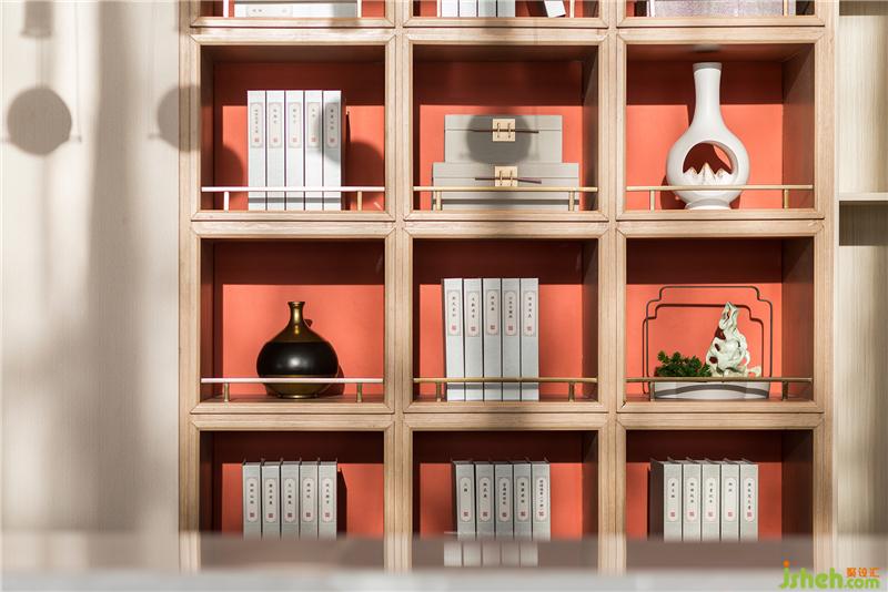 简洁又不失装饰性的造型语言所表现出来的基于线条装饰性,灵活运用重复、对称、渐变等设计手法,使几何造型充满诗意和富于装饰性。博古架也是设计师所特别打造的亮点之一,这种不刻意不夸张,自然流露的设计于无声中印入心灵,留给人与自然、美学更多的对话。