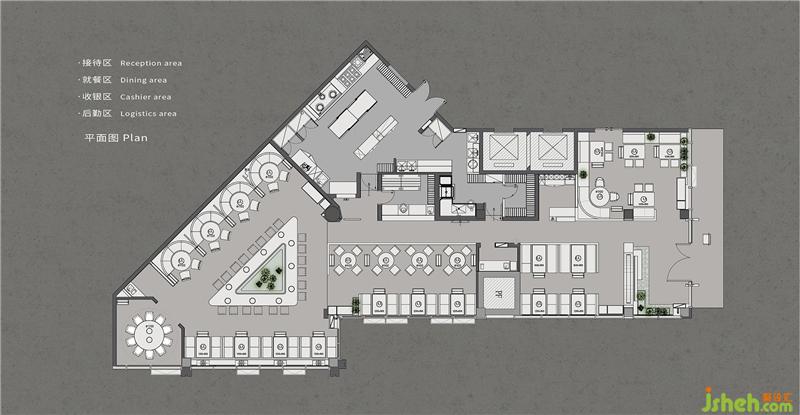 光与绿色,自然中动静皆宜的美学能量,是万物伊始的美好也是生命中不可或缺的向往,若空间里只有一处生机勃勃,我们愿意把它留给光与绿色,在墙壁灯光设计中植入绿色灵感,尝试挖掘静态美学的内在意趣,于空寂而质朴的空间中舍去满园芬芳,只留一枝独秀,在静与空、朴拙与精致之间形成一种自然、不矫揉造作的朴素感。餐厅设计