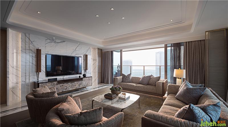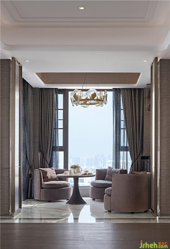 一隅海景映射心境,壹方空间印迹生活,在自然的空间里为居者带来自由的生活状态,启发精神的共鸣呈现都市新贵生活的品质与格调,[映·界]是本案的主题,也是朗昇团队私宅设计的态度写照。