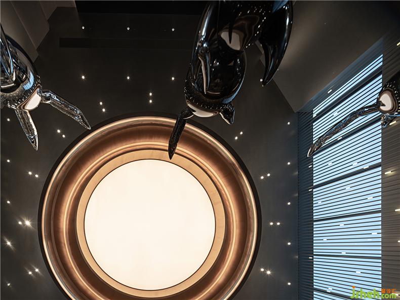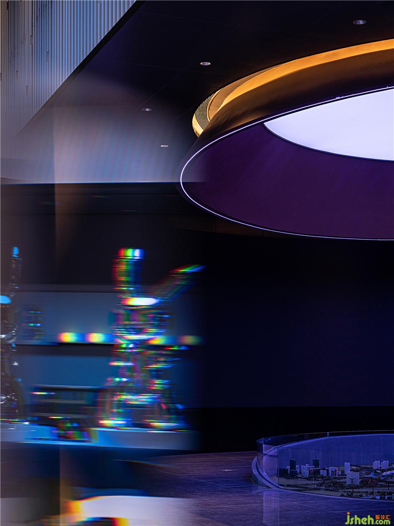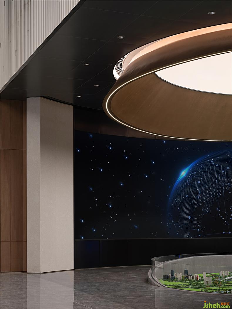 沙盘展示区取天地倒影、两两相望的星球对话、演艺空间解构天体运行的动态浮力球,空间顶面远近交替的圆形装饰与光源...每一个区域球体与球体之间能量的聚环虚化边界的同时把空间无限放大,而球体与球体之间的直线关联又像星系一样折射出多维的空间画面,装修设计行走在空间里,一面感受到无尽的生命、丰富的动力,一面体验理性的秩序、圆满的和谐,而这也是电竞精神的价值所向。