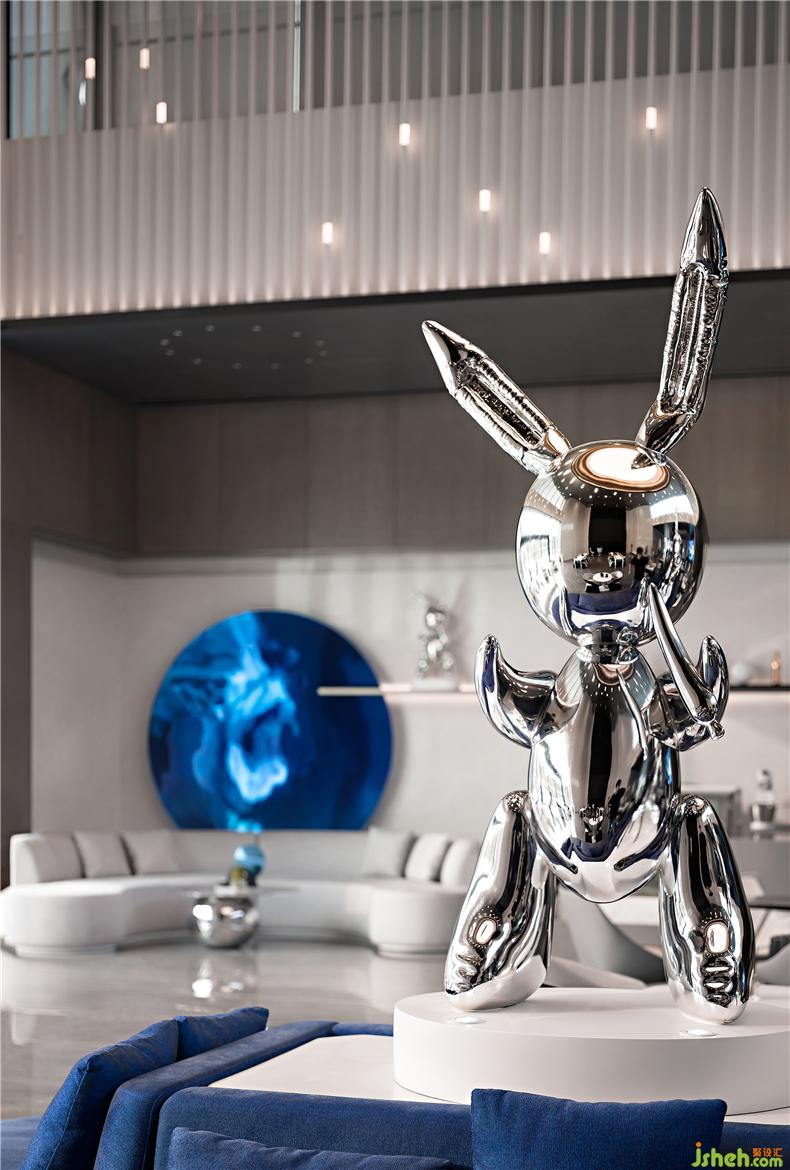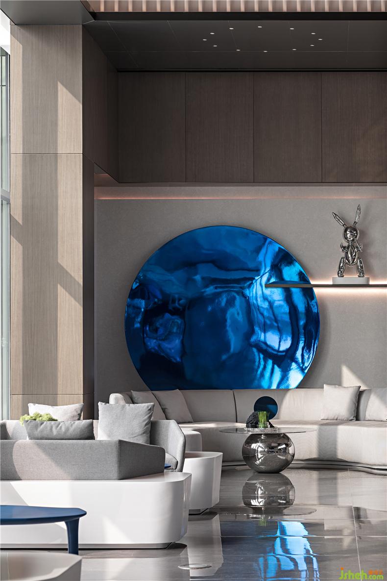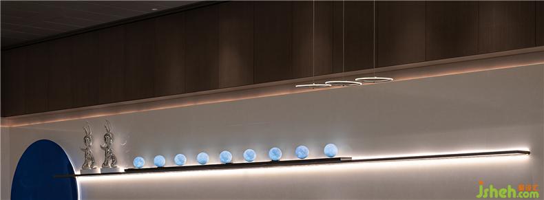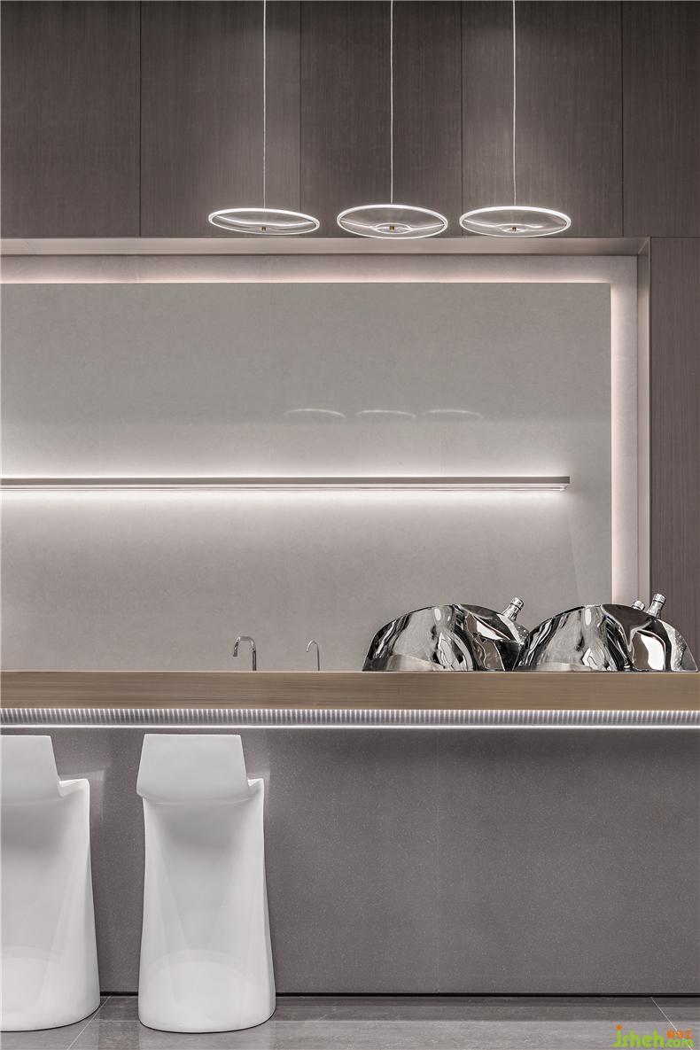 旋转楼梯尽头,一幅现代材料雕琢的几何画面浮现眼前,你在行走时抬头仰望,未来建筑的科技之美徐徐而来。装修设计 配合宇宙星辰的概念,在装饰上我们主张将整个空间的美学语言柔化于光线,让光在弱化物质形态的空间里自由穿梭,就像是星体间窃窃而语的摩斯密码,形成某种艺术概念和人文意义。