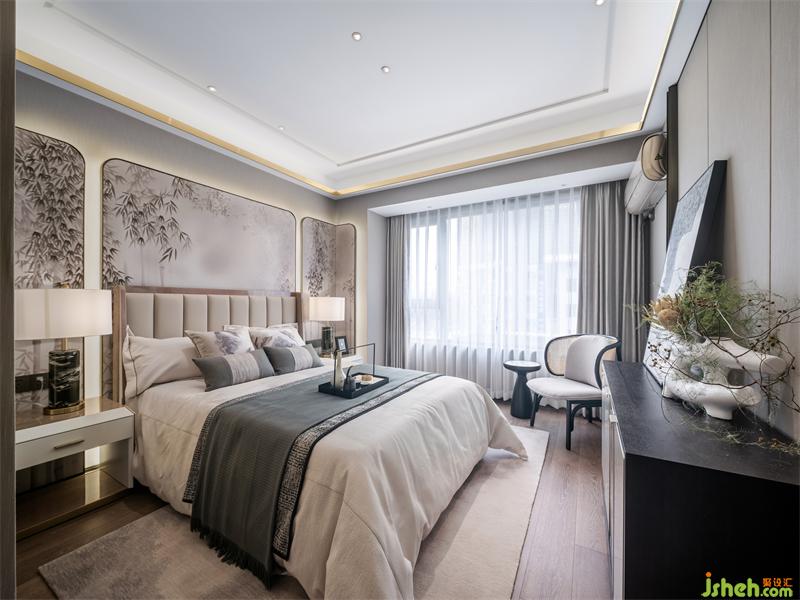 主卧清雅舒适,以浅色系为整体基调,给人以空濛雅致的氛围感以及舒适从容的归属感。