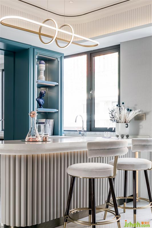 吧台的设计,增加了厨房与餐厅、玄关的互动性,设计师使空间最大化利用,让空间层次清晰分明。
