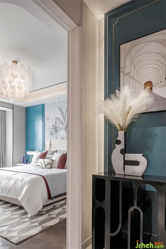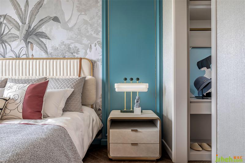 卧室秉承对生活时尚的敏锐触角,设计充分考量休憩空间的舒适感与品质感,整体色调呼应融合,背景墙的简约,与空间的融合体现出张弛有度的沉淀与思考,美便在这静谧悠长的情景中显现出来。