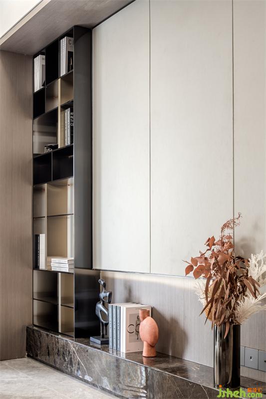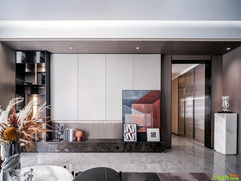 在设定中,男主人是某企业高管,女主人是杂志编辑,艺术是居者在空间中呼吸、生活、沉浸与作画的基底。因此,朗昇设计以简约的笔法、个性化的语素,为这个面积107㎡的居所描绘了有着浓郁艺术气息的生活图景。