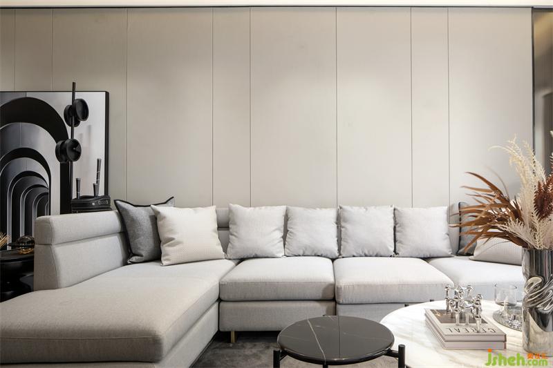 客厅空间轮廓线条以简洁的直线变化为主,简练而不失精致。沙发后的装饰画,桌上绽放的干花,增添了空间的观赏性。