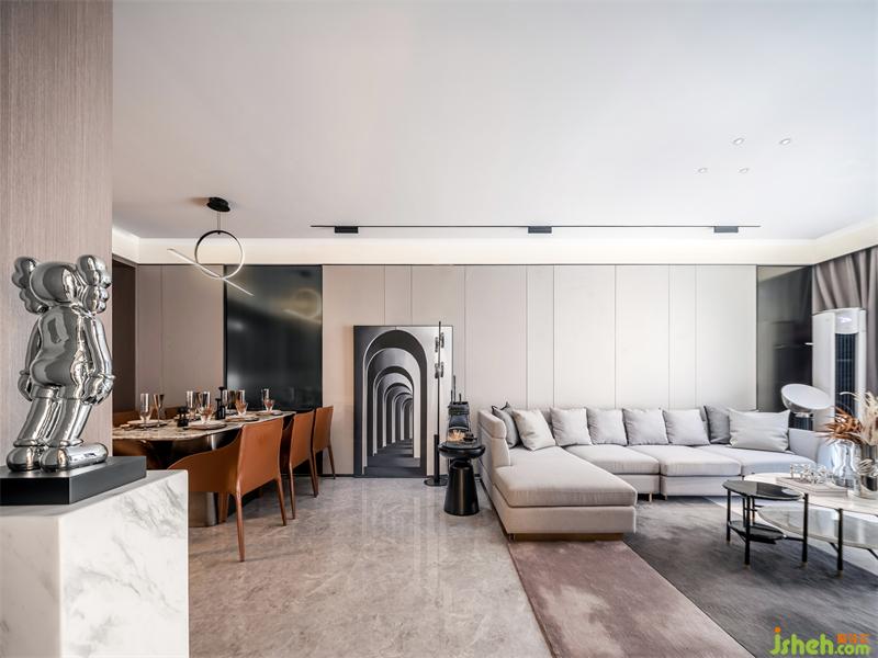 样板房设计通过对优雅轻奢的现代生活态度的空间诠释,在现代住宅中延续东方生活韵律,共情滔古品牌献礼孝感城市人文,匠造未来诗意居所的初心所在。