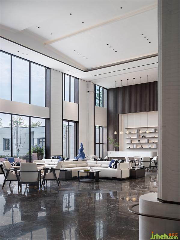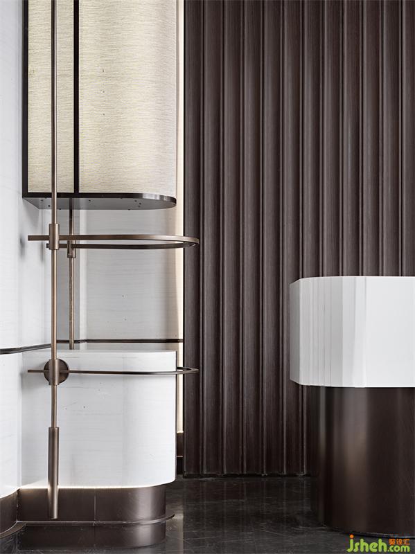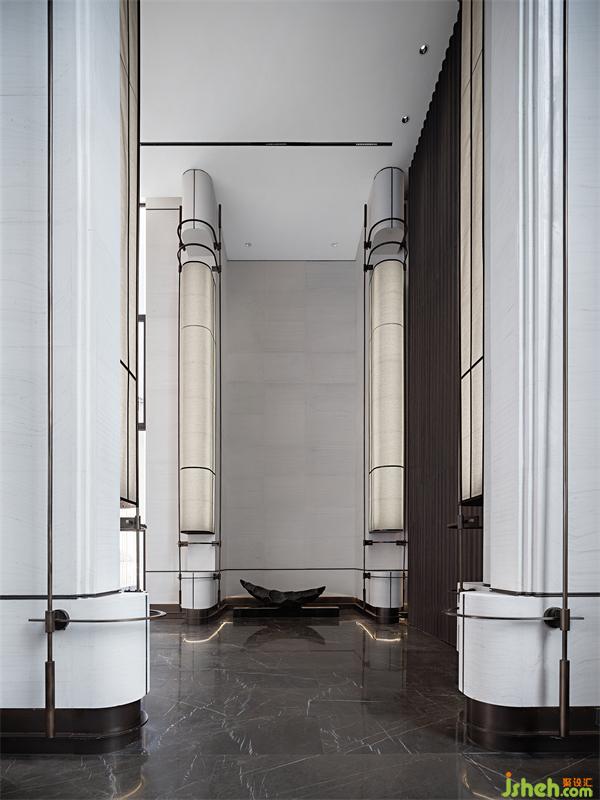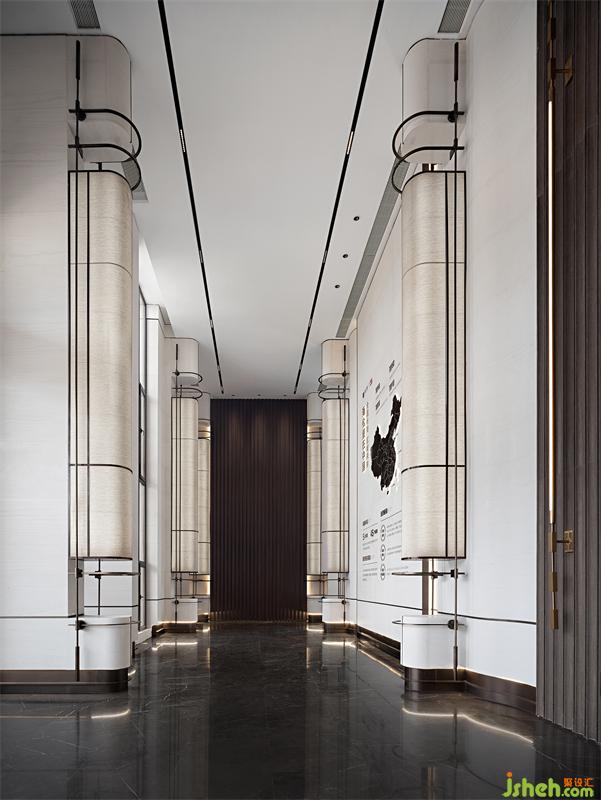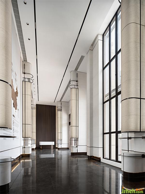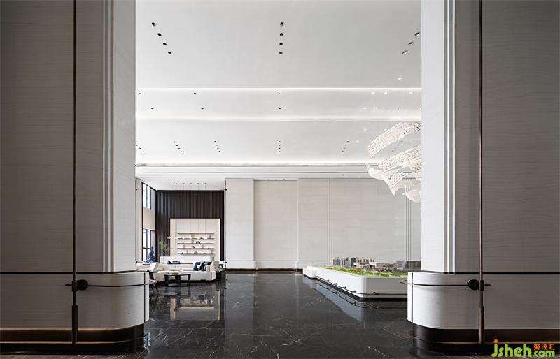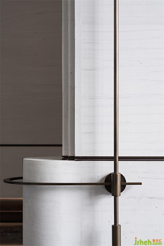 柔和的意境从接待厅的长廊开始,尽情引入自然光线营造空间的律动,设计师在线与线、线与面之间采用弧形处理,一种翘首以待的仪式感让行走在空间里的人们宾至如归。我们希望可以通过设计,让城市居住者来处可追寻,去向有所归属。