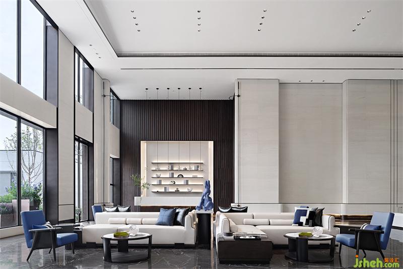 简洁轻快的氛围里加入一点明魅的蓝,目光所及悠扬愉悦,五感交互时心跳的频率与空间产生共鸣,我们希望通过设计拉近城市与自然之间的距离。