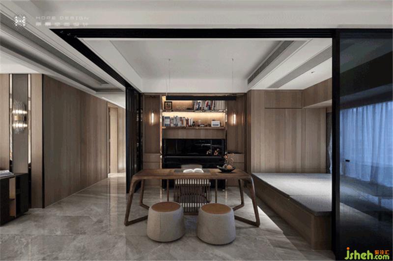 恰当的材料选配,通过材料的质感,进一步丰富空间形态变化,组合效果自然和谐,易于得到统一的视觉效果。不同材料的综合运用,和谐共处,体现了传统与现代的融合。