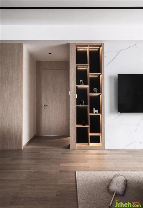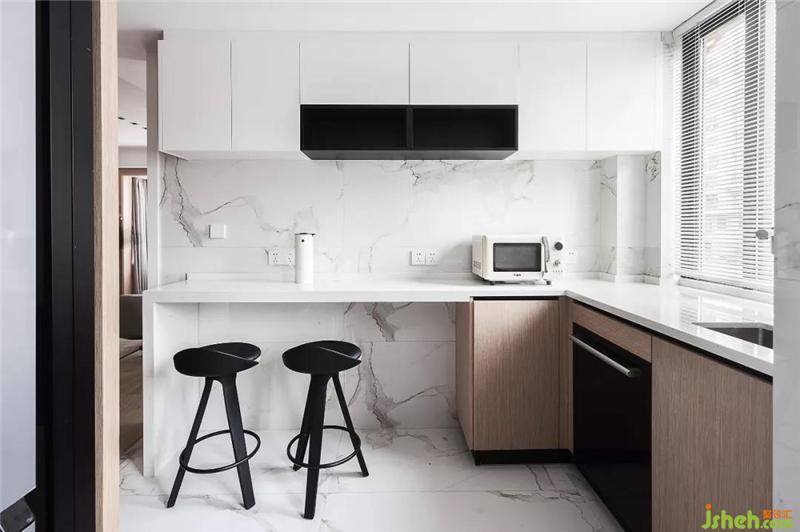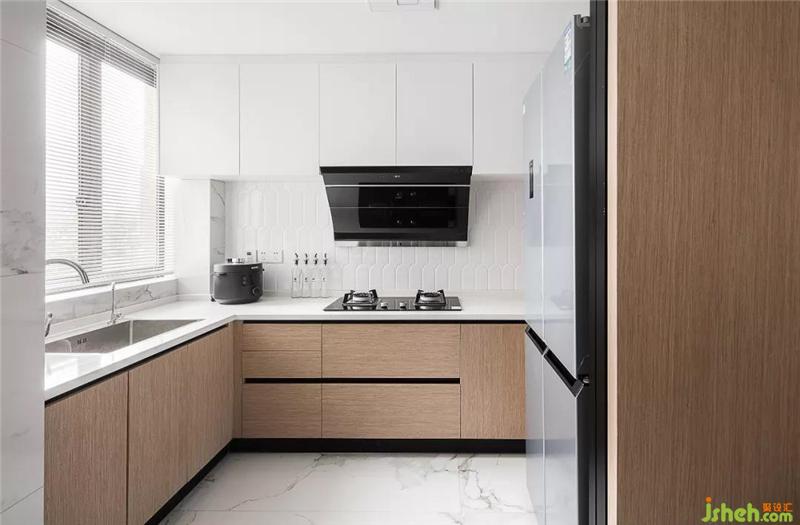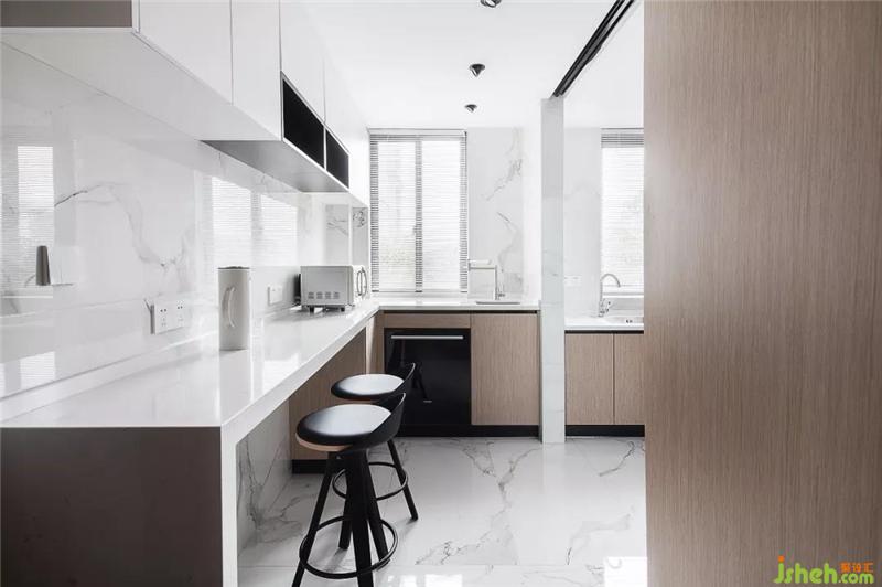 厨房隐藏式双节伸缩门设计,解决了时下敞开式厨房的油烟问题,美观又实用