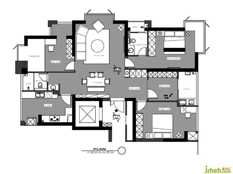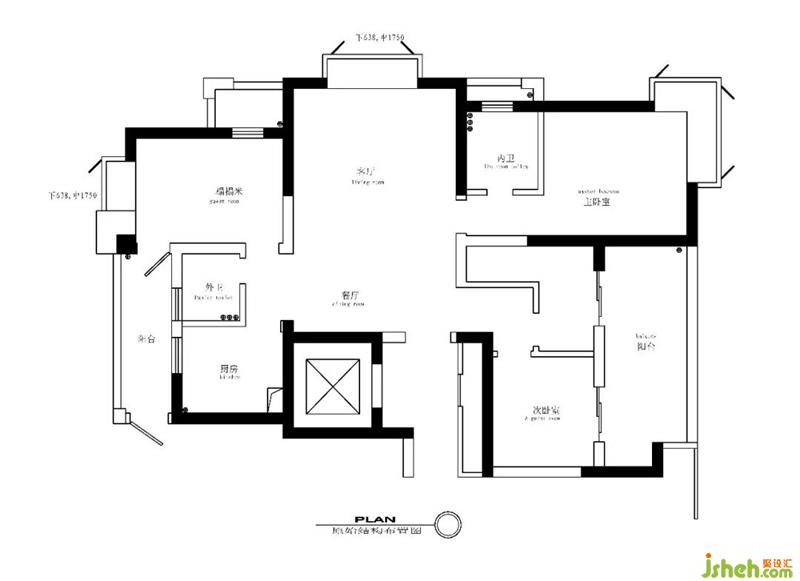 原有建筑存在几大缺点,北面厨房比较小 ,厨房外阳台没有充分利用,南边阳台过大,房间较小,中间区域空间存在不合理的空间