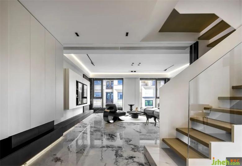 用简洁的上跃豪宅设计语言,谱写现代乐章。空间中色彩的和谐性就如同音乐的节奏与和声