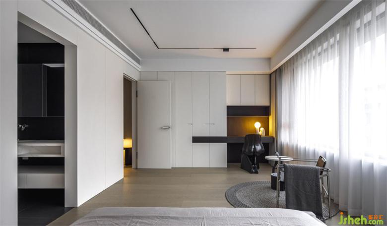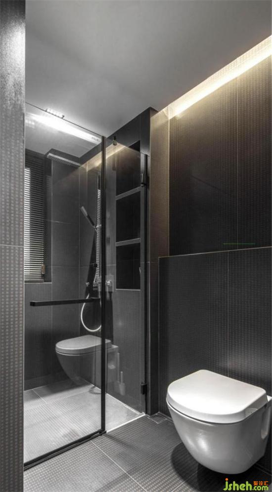 主卫使用黑色与白色作为空间的主色调,营造干净纯粹的视觉上跃豪宅设计感受。卫浴间通过干湿分离的设计美观又实用,大面积的黑色,显得沉稳而高级。