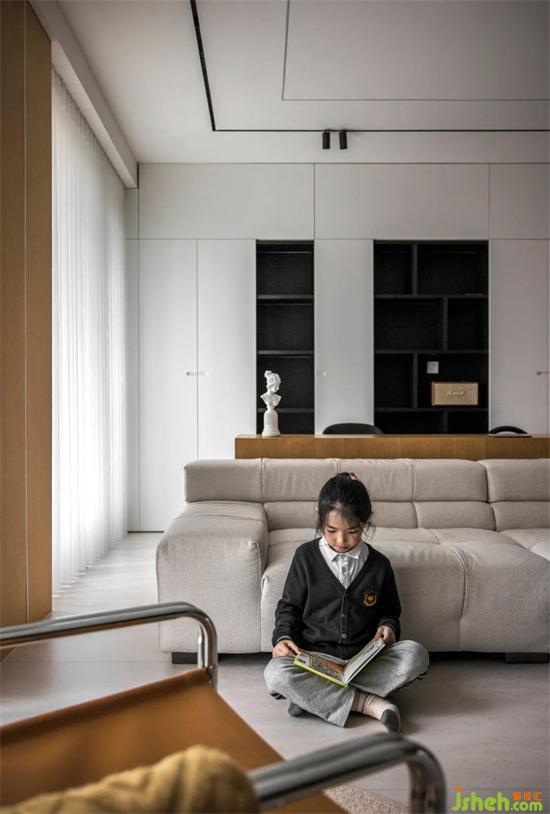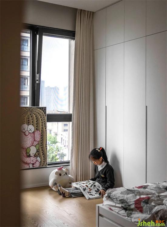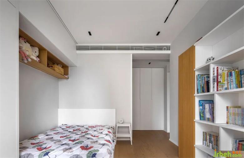 孩子房沿用整体风格,温润的木饰面搭配柔软的小床,书架与装修设计书桌兼具满足日常的使用。同时使用通顶储物柜,收纳孩子的杂物,创造出专属于孩子们富余的一方天地。