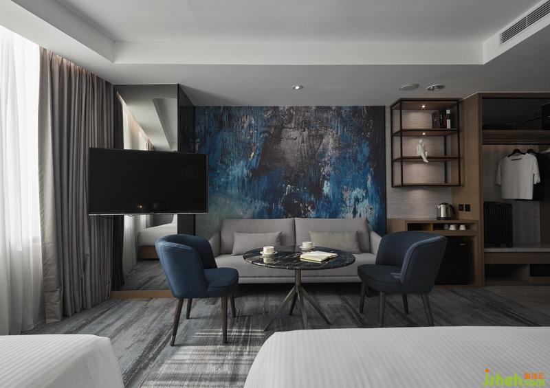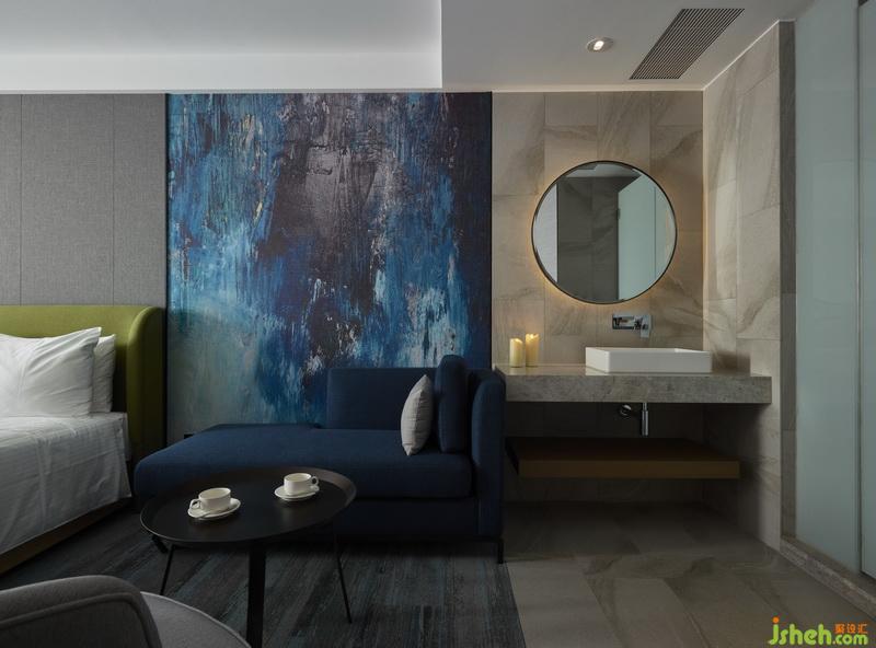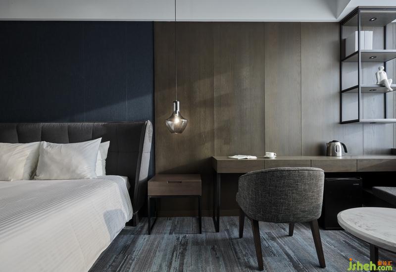 房间内温和的光照晕染了床边,缓缓地映入凝视的目光。同色系的家具陈设衬出墙上如瀑布般的抢眼壁画,以视觉来引导流动意象,悠缓静谧,同时存于此刻,丰富纹理与色彩的布质,木的含蓄内敛,在复古摩登的灯具照映下,带动空间温度。夕阳落下,透过细腻的讲究,室内氛围与窗外高雄市景产生感性对话。室内设计师