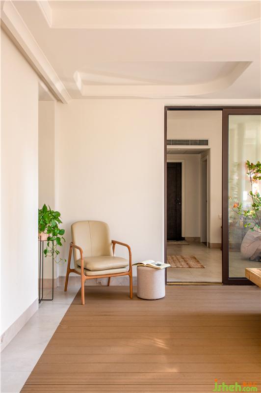 花园角落里安放了一椅一几,便于在每一个阳光满溢的午后惬意阅读,即使渐渐被睡意包裹也可缓缓松开手中的书籍,进入沉沉的梦乡。而此刻倾斜的阳光透过窗户来到身上、椅子上、地板上和墙上。随着时间的流动阳光也开始流动缓缓温暖着这个家庭的相伴时光。