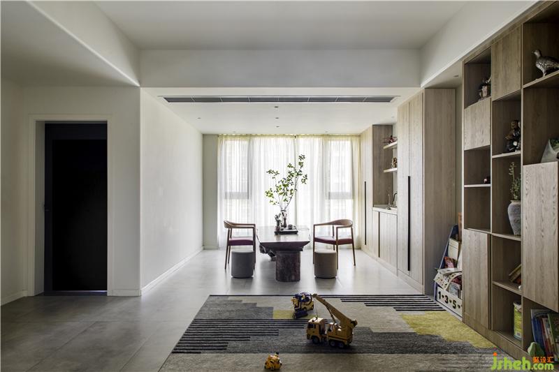 另一个公共空间依旧通透方正,靠近阳光的区域是品茶待客的不错选择或挑个时间开一场短暂的家庭会议,规矩又不失和谐是家人之间张弛有度的相处之道。