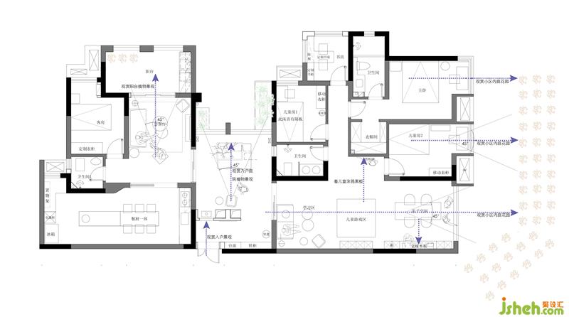 两个小主人的玩耍区不需要过多堆砌,只需要在这里留出自由发挥的空间,每个成长阶段定有不同可爱景象。