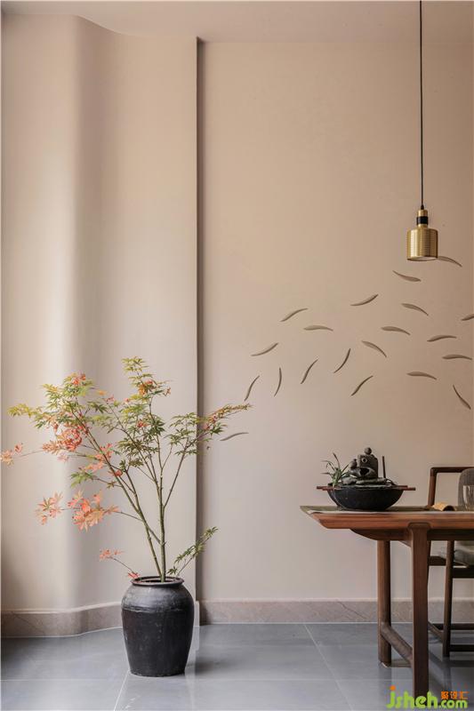 与墙面同色系呼应,内敛不张扬圆润的墙角、边沿,消磨生活的冲击与琐碎