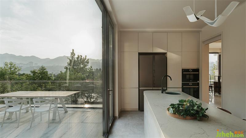 重庆别墅装饰直线绘出两点间的最短距离,弧线却是自然界馈赠的神秘礼物。客厅、茶室中的阳角和柱子,皆采用了弧形设计,是带给空间灵动的调剂,亦是敬献给大自然的回礼。