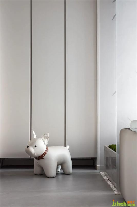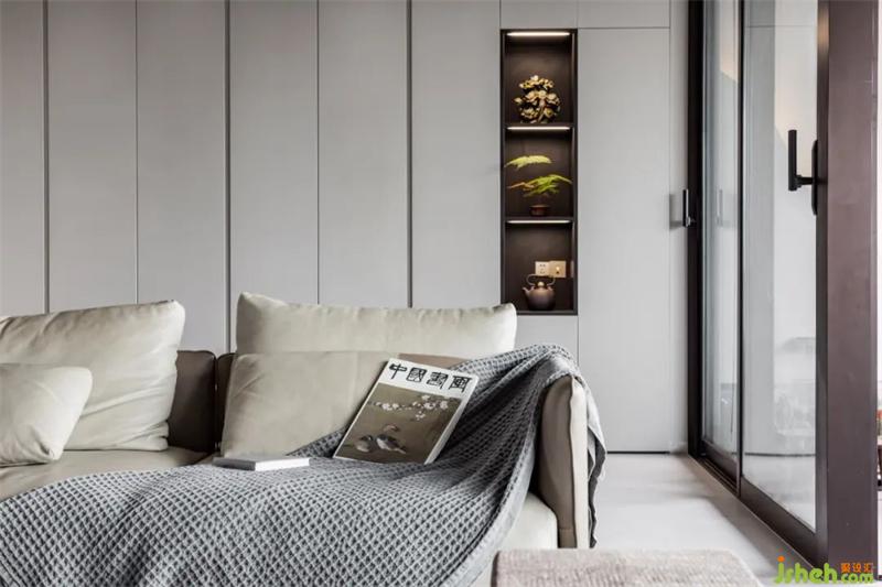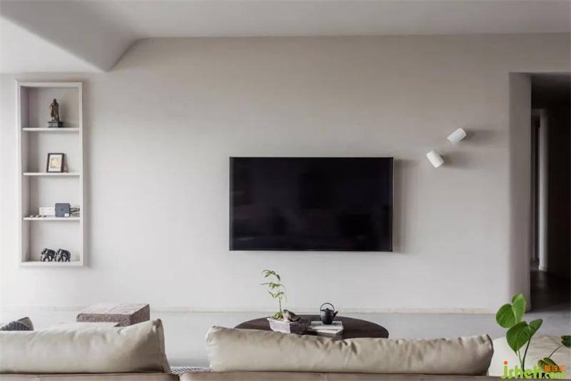 电视墙摒弃了造型结构,用最简单的一面底色来衬托,让视觉看上去干净整洁