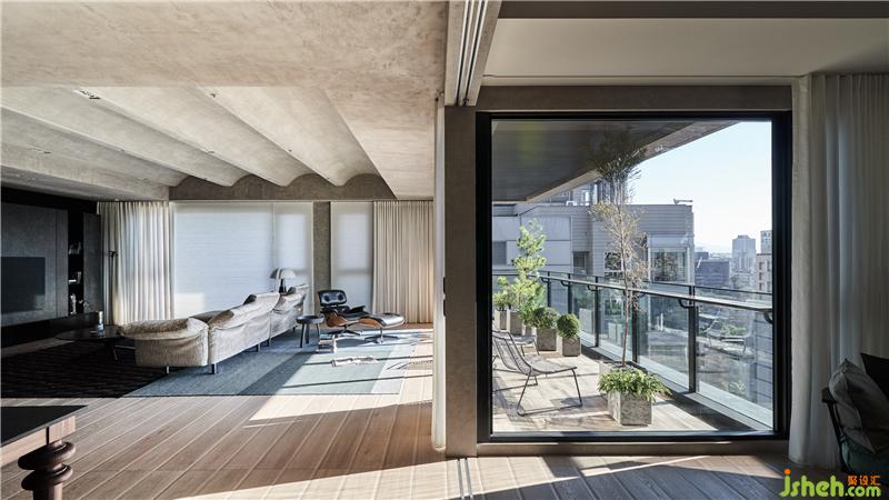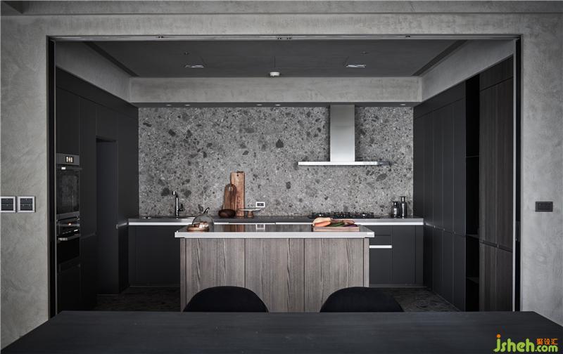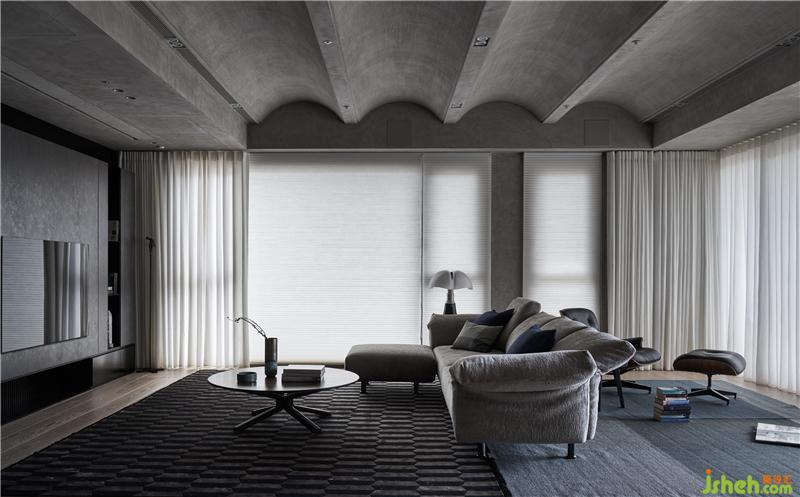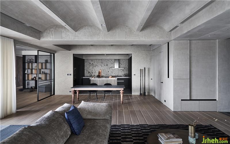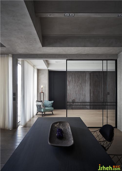 于公、私领域大量置入自然矿物的灰色主调于生活中,达到一种舒缓的心灵放松。同色系不同材质的质感运用,呈现静的不同层次,交迭出静谧感,隐喻和谐、回归自然。