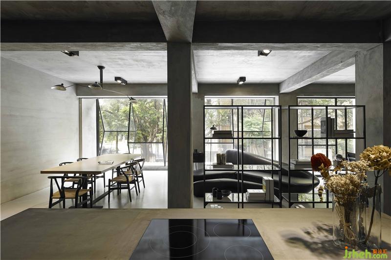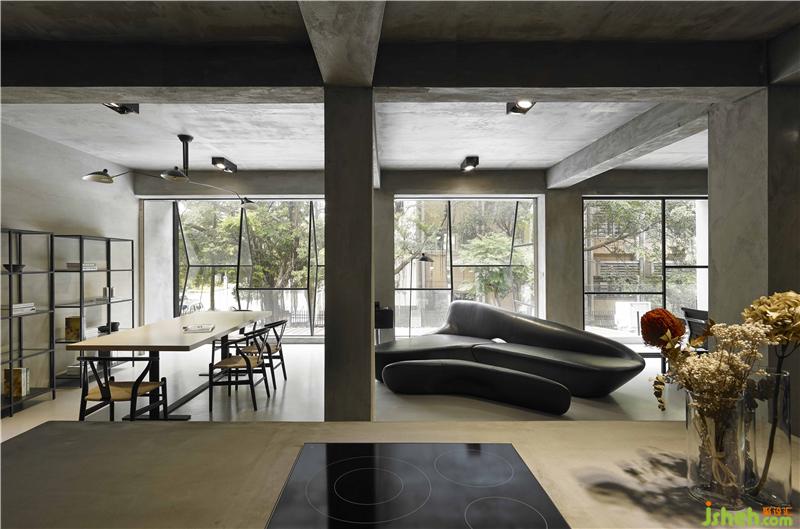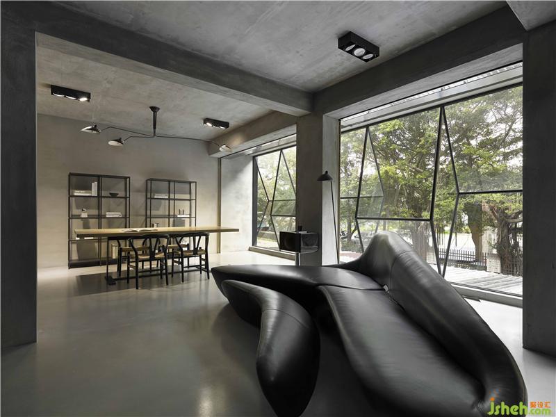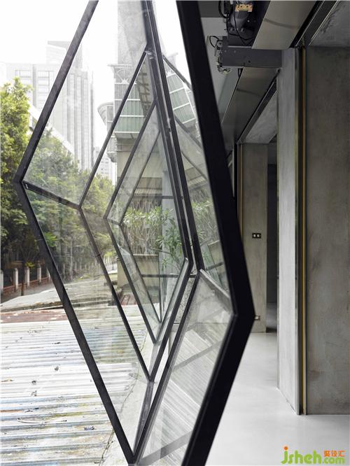 座落于幽静巷弄里的方正空间,面对着一大片的连续树景,用钻石切面的语汇构境,试图透过不同的角度捕捉绿意,窗户上下左右的错置分割,可以看到不同画面的场景,自然的景色中,多了层次变化及光影转折,多重视野的重置组合,隐喻着创意工作者的不同眼界,创新求变的思维及追求完美的精神。