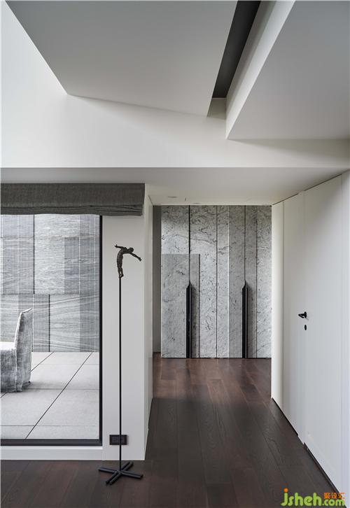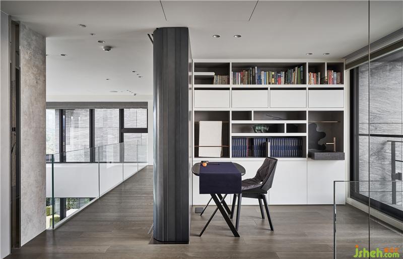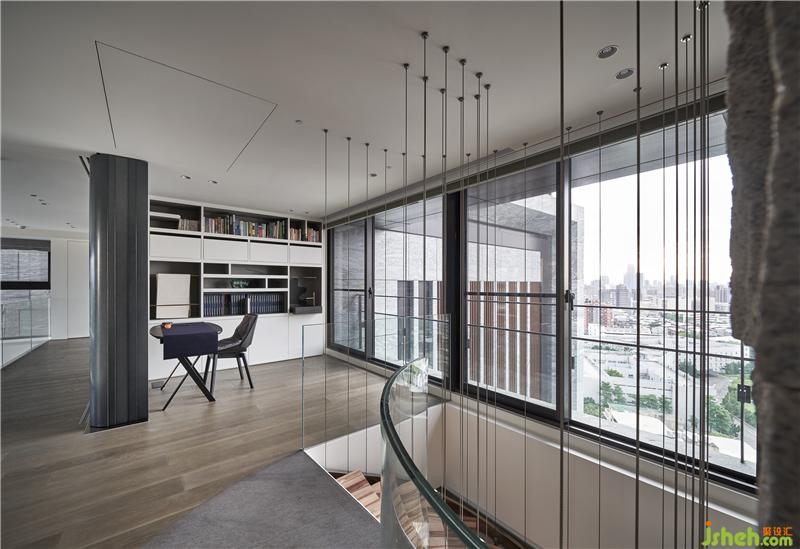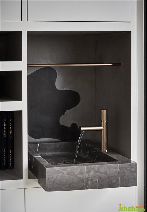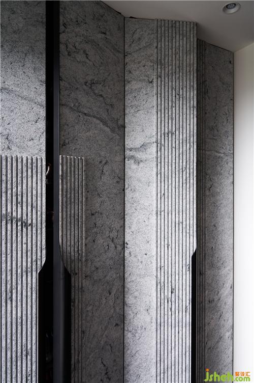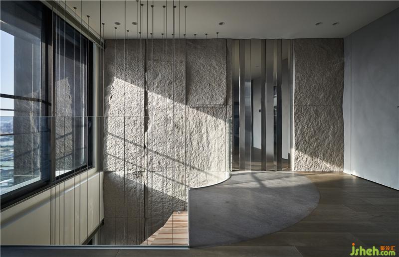 楼梯以「瀑布」作为初始灵感发想,仿彿流泉、飞瀑的写意,象征着生生不息,将「移念到眼前」的概念,引入远山近水的意境堆栈,与窗外湖面景色的宁静对望;亦是一座室内的装置艺术,都市自然生活场景达到里应外合。工法上,大胆以不锈钢板的原生材料,很坚实、刚硬,但又很有韧性的特质,加以工匠精神的凿刻再创新技艺, (以永不放弃的初心,克服万难的始终坚持) 艺现量体雕塑。融合内、外自然之境: 远景、中景、近景,造成视觉的跳跃,上海装修设计一方面产生一动与一静的节奏感。犹如一幅满幅山水画的远近效果,造成了人与自然共居的永恒、稳定、与包容。自然都会绿意生活的形体跟质感形神俱足,以景中之境抒写美好日常。