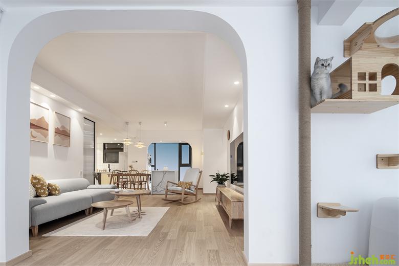 本案业主是90后单身,父母偶尔会过来住。女业主是动漫设计工程师,家里有两只猫,喜欢自然简洁的原木风,业主性格活泼,喜欢旅游。希望自己家的每个角落都能散落着自己喜欢的物件,这样每看到一样东西都能回忆起旅游的点点滴滴,从而增加了家的温度。成都装修设计在设计造型上放弃了十字绣和豪华水晶吊灯,以及五颜六色可变化的灯带。最终以原木色和白色结合的元素设计。