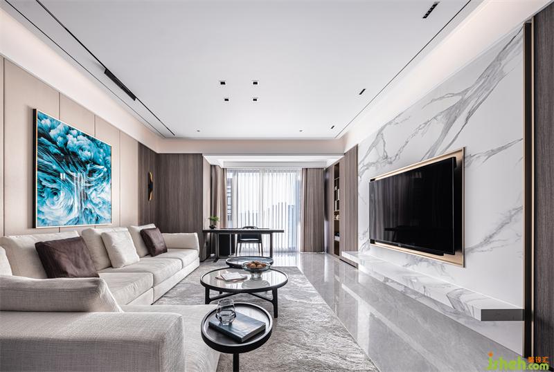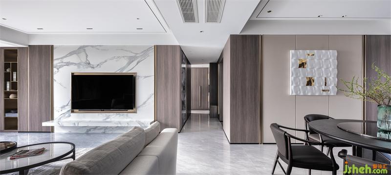 灯光对于现代家居也极为重要,选择好灯光才能更有效地提升空间氛围感,体现材质的最佳状态,私宅设计师运用了很多点缀光与辅助光源,比如窗帘盒灯光,各地方暗藏灯等。并在方案里推荐了智能系统,设置好灯光情景模式,回到家仅用语音控制就调节我们日常所需的灯光氛围。