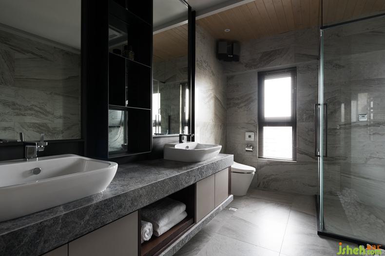 2. 客廳電視牆採用天然石材大幅拼接而成,彷彿現代潑墨的鮮明紋理,與廳內個性十足的家具擺設、影音設備相得益彰。