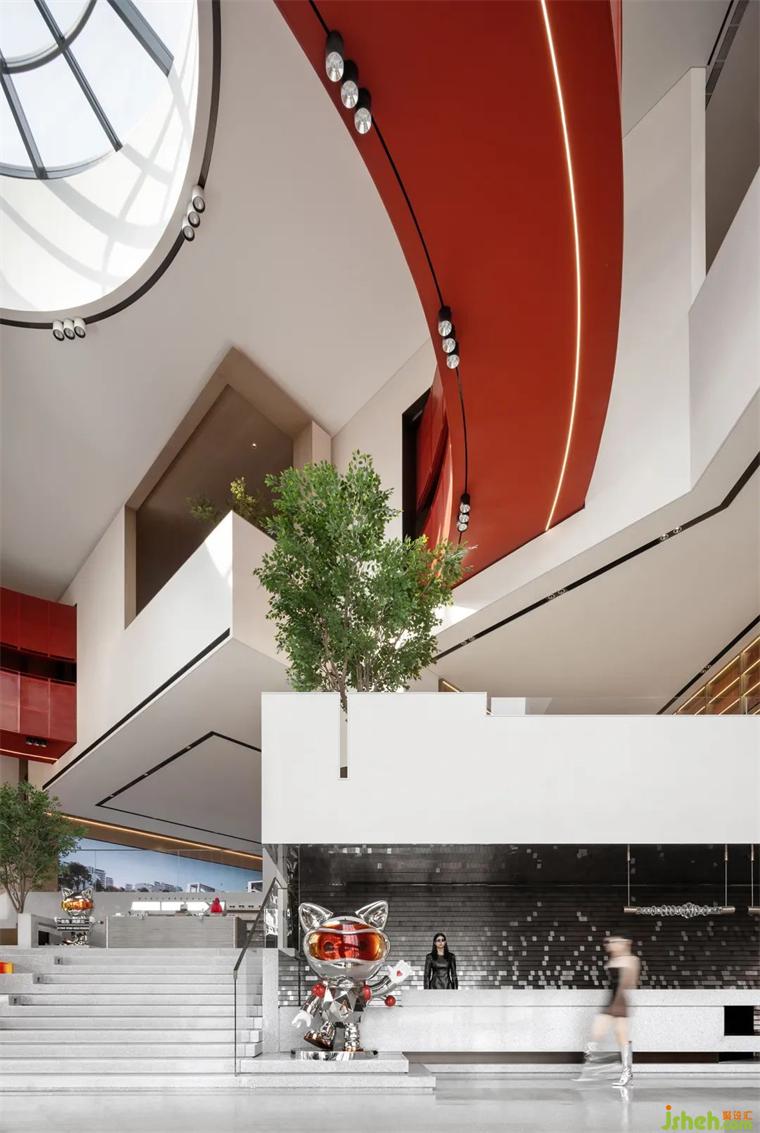 步入大厅,便感受到空间宏大的气势。取山峦之俯仰气度,装修设计融廊桥与山亭之形态,行走停驻之间感受万千。高大蓬勃的绿植,通透的自然光线让人感受到色彩之间的美学艺术张力。