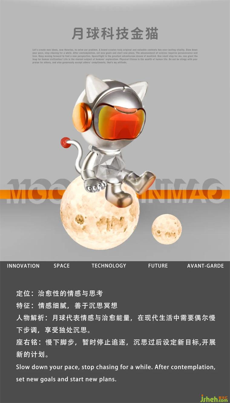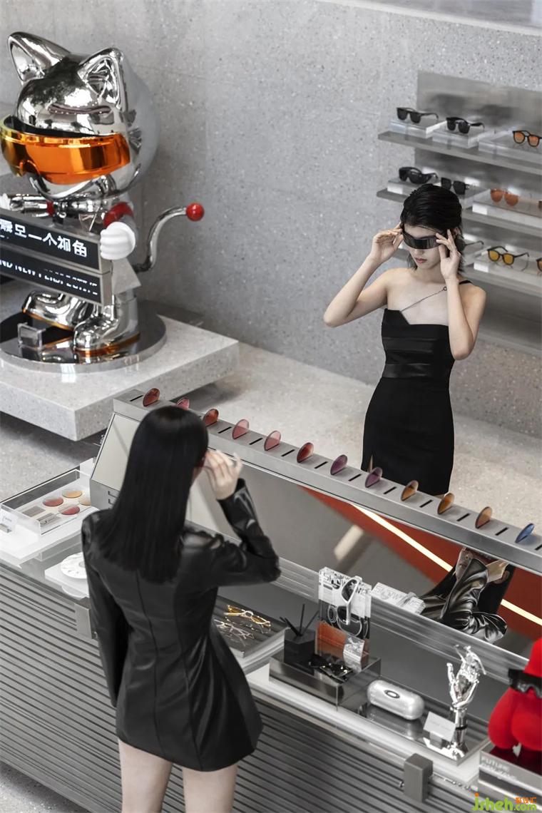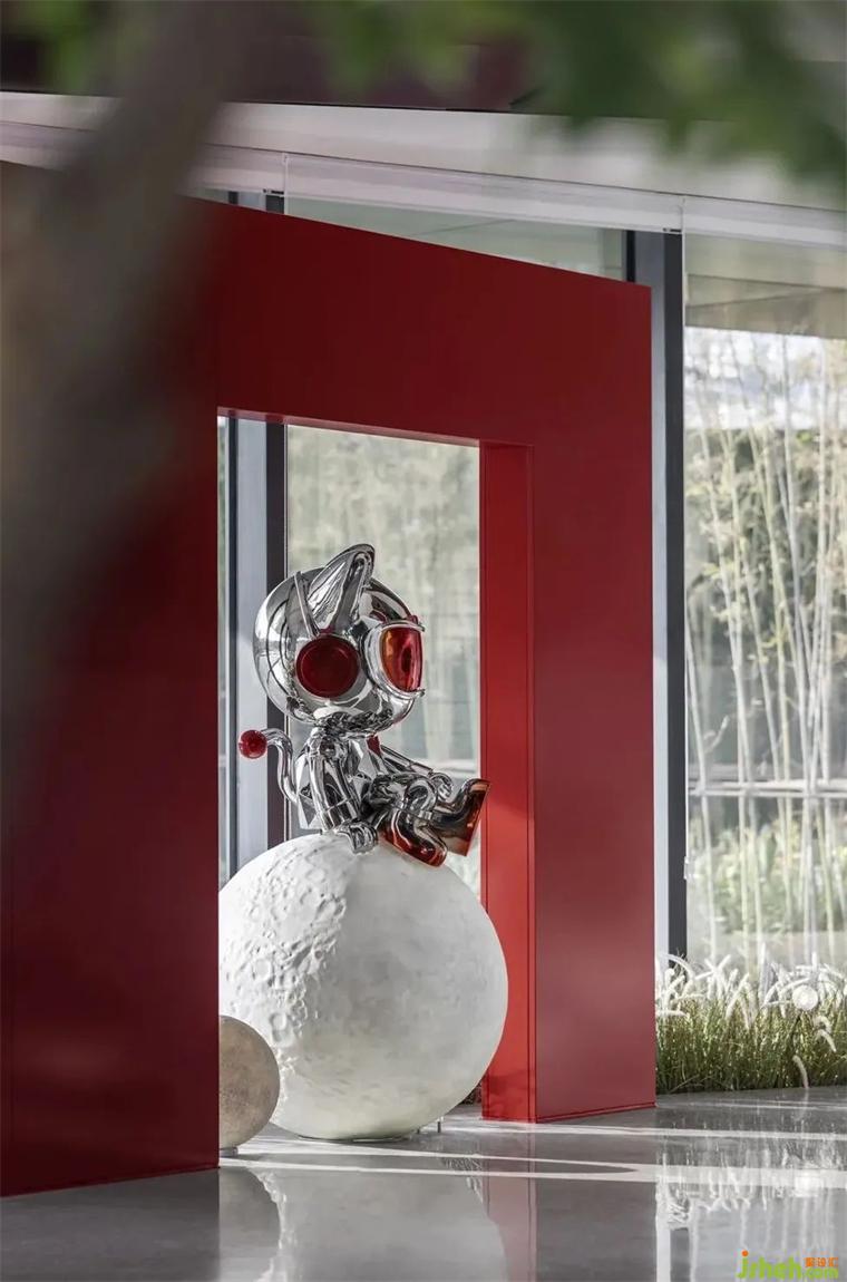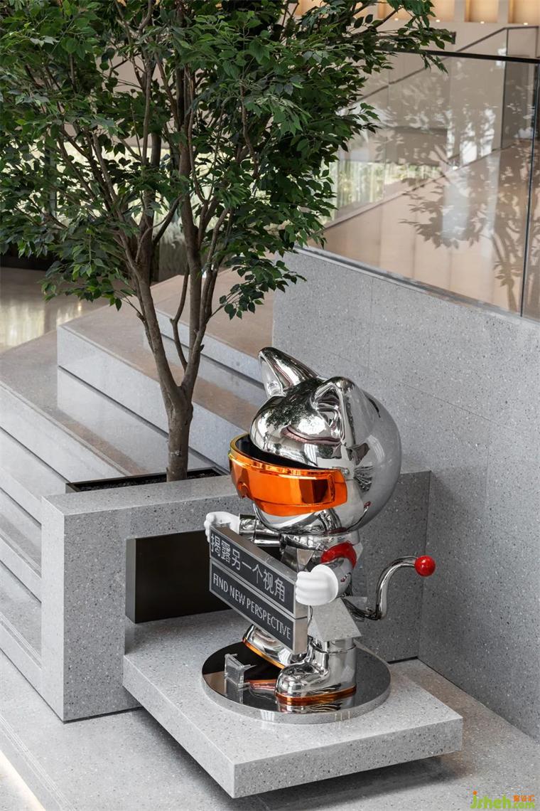 盒子橱窗处有只萌趣的精灵——月球科技金猫,它略显恬静的姿态显得尤其美好,一派沉思的模样让人不由得跟着一起思索起来。装修设计将其与月球的形象相关联,不仅仅是天马行空的想象,更是对生活的无限期许,月球让我们的思绪飘远,柔和的月光更让我们沉静下来,放慢脚步驻足思考本心,寻找内心深处治愈的能量。