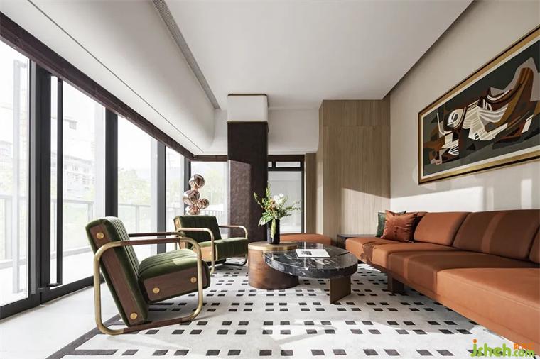 VIP室,阳光透过大面积玻璃窗,远处的山峦历历在目,装修设计凝思中事物的物象溶为一体,可谓吸纳了山峦的灵光。