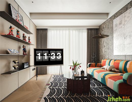 这是一处承载家庭欢乐与情感记忆的独特空间。将亲子电影、热血电竞体验、潮玩收藏展示和童年回忆交织在一起,大平层设计呈现出丰富多彩的生活场景。沙发大胆的色彩碰撞犹如艺术画作般生动活泼,样板房设计为整个空间注入了无限活力与创意灵感。