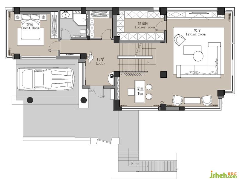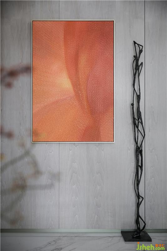 门厅处的橙色版画以热烈的姿态迎接着来访者,它是整个空间中色彩的燃点。用自己耀眼的明丽中和着灰调的沉滞,宛若尼采笔下的“酒神狂欢”。