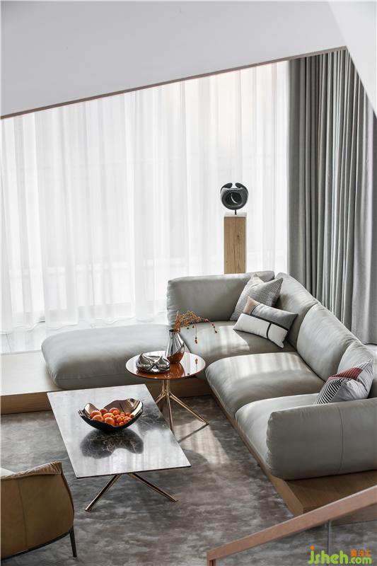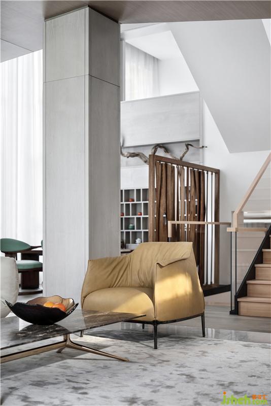 置身会客厅,与它温吞细腻的质感相迎,平添一种不疾不徐的从容心境。一切都柔和宁谧,没有锐利的尖角,惬意休闲之外,更在意的是空间肌理带给人心的沐春抚慰。