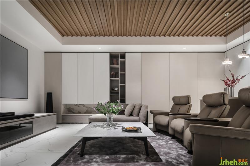 影视厅和钢琴厅作为以视听为主的功能空间,被设置在了负一楼,兼具隔音性与私密性,静享生活的闲暇时光,安然自得。