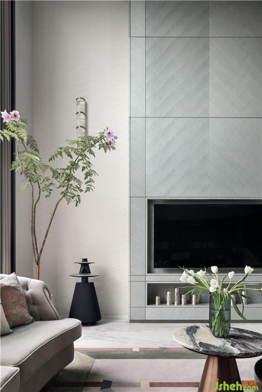 无论砖石还是金属饰物,都有着考究精致的的纹理,一丝不苟。亭亭玉立的木槿花枝摇曳,姿态柔美,灵动而富于生气,将现代典雅的家烘托得清雅婉转,静穆自然之中弥漫着动人的生命力。