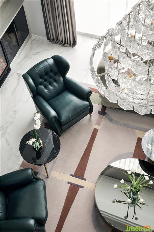 客厅中醒目的意大利Poltrona Frau经典系列1919扶手椅,庄重典雅,彰显着业主独特的复古品味。